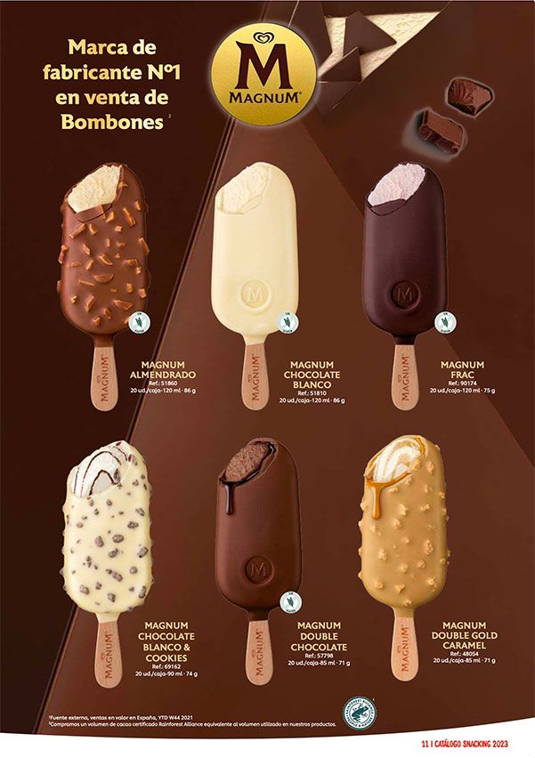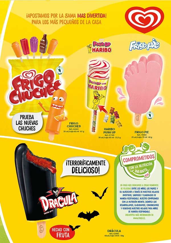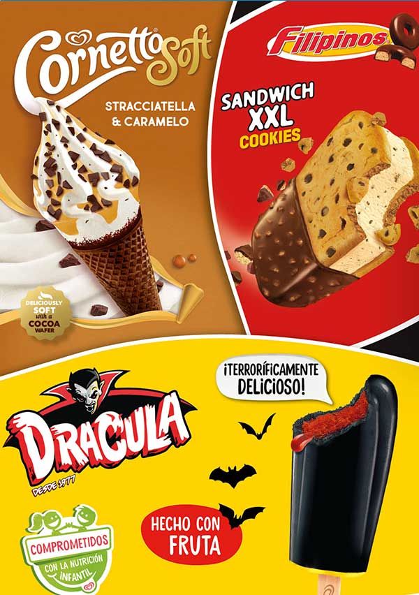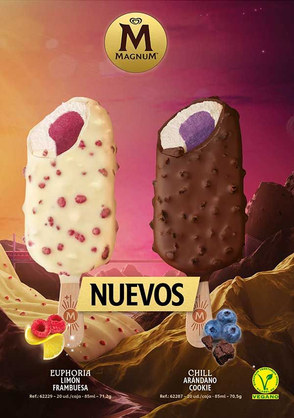 Te presentamos las novedades del catálogo de helados Frigo 2024ya disponibles enValladolid y Palencia. ElMagnum Euphoria, con helado de limón cremoso envuelto de un intenso núcleo de sorbete de frambuesa. También damos la bienvenida alMagnum Chill , con helado sabor galleta de vainilla con interior de arándanos, cobertura de chocolate y trocitos de galleta. No olvides elsandwich de chocolate XXL de Filipinos. Y por último el nuevoCornetto Soft Stracciatella. Y por supuesto, seguimos alucinando con la vuelta del nuevoDrácula!